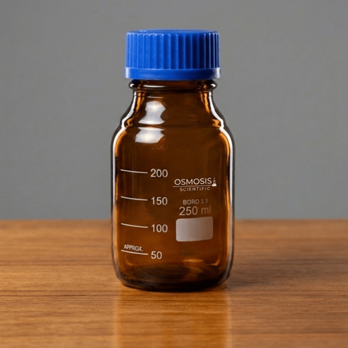 Some chemicals, like silver nitrate, can go bad if they touch regular light. Therefore, Osmosis Scientific makes these bottles with a built-in amber tint. Because the color is part of the glass itself, it will never peel or wash off. Consequently, your expensive reagents stay fresh and work perfectly for a long time.